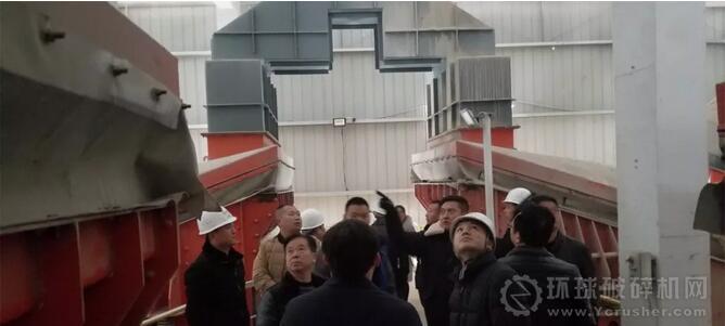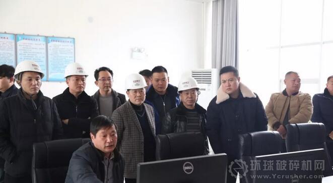 參觀領導第二站來到了由中譽鼎力承建并運營的衛輝天然資源有限公司時產3000噸精品砂石骨料生產線現場,衛輝市政府辦副主任張長海、衛輝市地質礦產局局長蘇美德陪同參觀。河南中譽鼎力智能裝備有限公司董事長張治民向各位領導介紹了生產線項目的礦山資源整合背景、建設過程、生產工藝流程及目前的運營狀況。考察團參觀了該生產線環保化的生產方式、花園式的生產廠區及智能化的操作方式,其環保、智能、高效的生產特點受到了眾人一致稱贊。