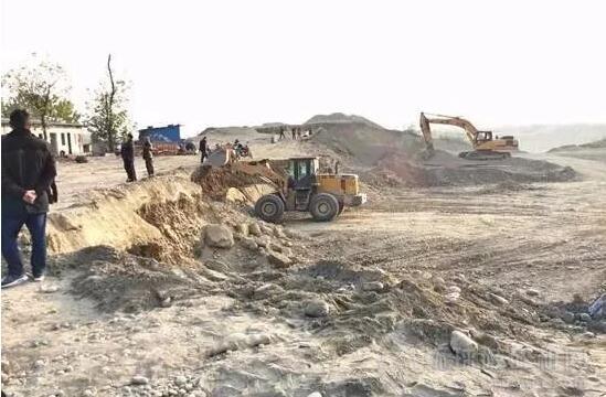 桂林街道辦組織的大型機械對三強砂石廠設施設備進行拆除