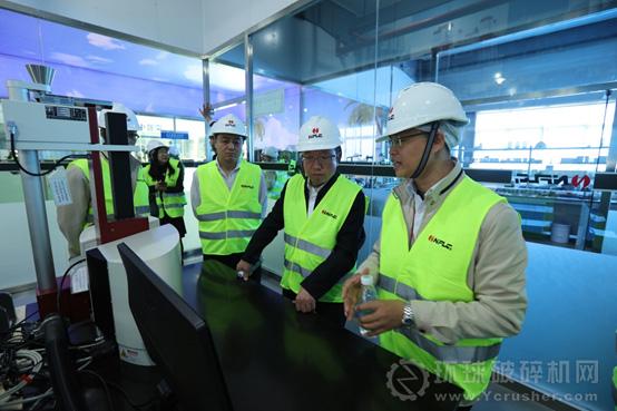在上午的參觀中,馬德科董事長(zhǎng)一行先后考察了南方路機(jī)產(chǎn)品展廳、生產(chǎn)車間、研發(fā)中心、實(shí)驗(yàn)中心、攪拌學(xué)院、制砂試驗(yàn)場(chǎng)、云平臺(tái)主控中心等,詳細(xì)了解南方路機(jī)各項(xiàng)研發(fā)實(shí)驗(yàn)設(shè)施,觀摩了正在進(jìn)行的機(jī)制砂、骨料在線監(jiān)測(cè)、瀝青發(fā)泡、干混微計(jì)量、建筑垃圾機(jī)械化揀拾分離等實(shí)驗(yàn)演示。馬德科董事長(zhǎng)不斷就工程建設(shè)材料研究、精品集料加工、智能化生產(chǎn)、安全管理等關(guān)心的領(lǐng)域提出專業(yè)性問(wèn)題,南方路機(jī)方慶熙董事長(zhǎng)及總工程師、事業(yè)部部長(zhǎng)現(xiàn)場(chǎng)進(jìn)行解答和交流。