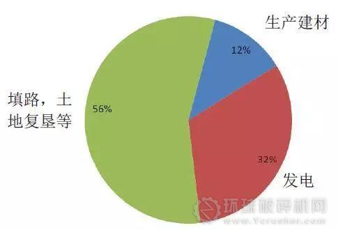 煤矸石是我國積存量和年產(chǎn)生量最大、分布最廣的工業(yè)廢渣之一,據(jù)《中國資源綜合利用年度報告(2014)》中數(shù)據(jù)顯示,2013年我國煤矸石總產(chǎn)生量接近7.5億t,綜合利用量為4.8億t,占年總產(chǎn)量的64%,其中發(fā)電利用煤矸石1.5億t,占總綜合利用量的32%;用于建材產(chǎn)品生產(chǎn)利用量為5600萬t,占總綜合利用量的12%;用于土地復墾、充填礦井采空區(qū)和回填塌陷區(qū)等的煤矸石量約2.6億t,占總綜合利用量的56%。
