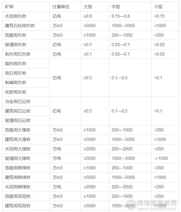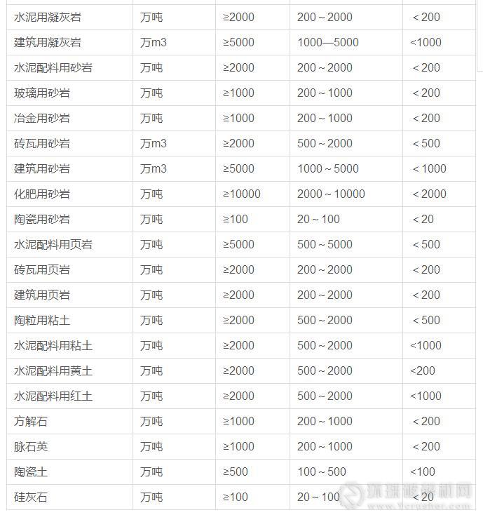 砂石土礦山儲量規模與生產建設規模分類一覽表