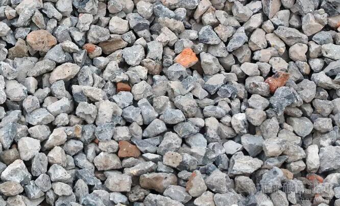 破碎前的動(dòng)遷建筑垃圾和破碎后的再生骨料成品