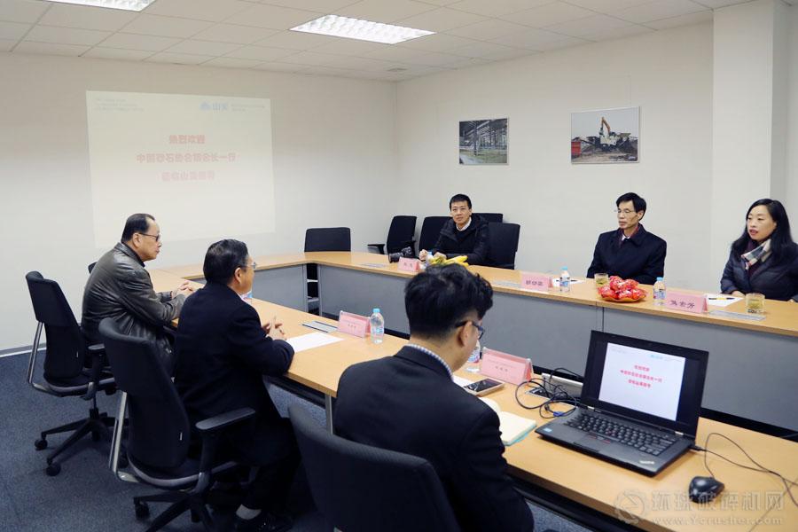 2018年1月10日,中國(guó)砂石協(xié)會(huì)會(huì)長(zhǎng)胡幼奕、副秘書(shū)長(zhǎng)陳堯、再生骨料分會(huì)焦素芳一行蒞臨山美股份參觀指導(dǎo)。山美股份董事長(zhǎng)總經(jīng)理?xiàng)畎裁瘛⒖偛眯煲悖偨?jīng)理助理劉文林接待了胡會(huì)長(zhǎng)一行,并進(jìn)行了座談交流。
