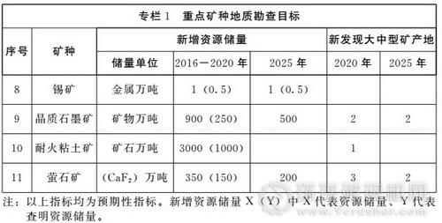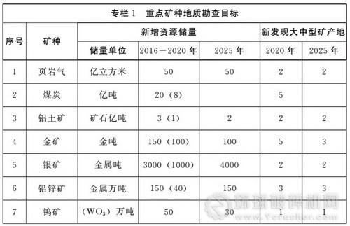 ——重要礦產資源實現找礦新突破。預期提交重要礦產資源大型及以上礦產地8—12處。建立境外礦產資源勘查基地。