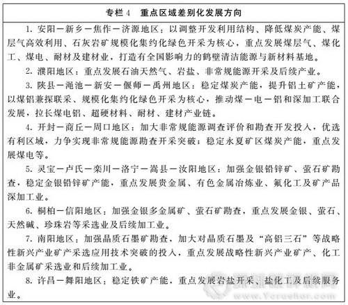 重點區域差別化協調發展。根據我省礦產資源稟賦和礦業發展布局,采取差別化發展方向,促進重點區域內礦業的優勢互補、協調發展。
