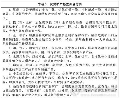 優勢礦產勘查開發方向。根據我省優勢礦產資源特點和礦業現狀,以供給側結構性改革、提高發展質量和效益為出發點,調整優勢礦產勘查開發方向。