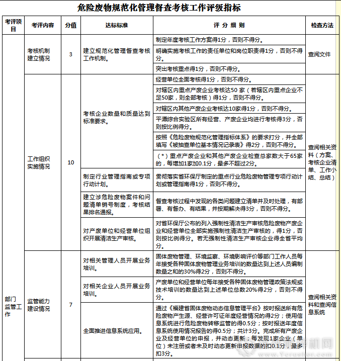考評方法詳見《危險廢物規(guī)范化管理督查考核工作評級指標》。
