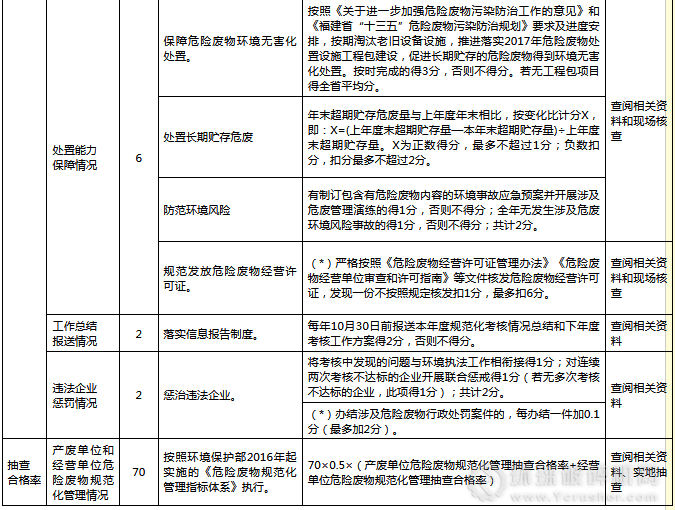 對各設(shè)區(qū)市和平潭綜合實驗區(qū)危險廢物規(guī)范化管理督查考核工作的組織實施和工作成效等情況進行考評內(nèi)容主要包括: