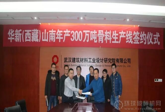 2018年1月16日,武漢建材院與華新(西藏)水泥有限公司在武漢簽署了“年產300萬噸骨料生產線”項目總承包合同。