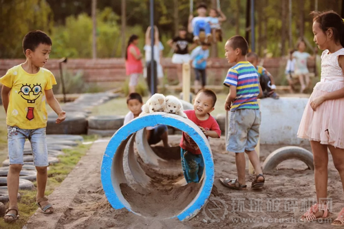 ▼ 利用建設(shè)廢料打造生動而豐富的鄉(xiāng)村世界,沙坑和水泥管