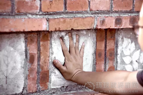 ▼ 小朋友參與制作的水泥磚砌在了樂園的矮墻上