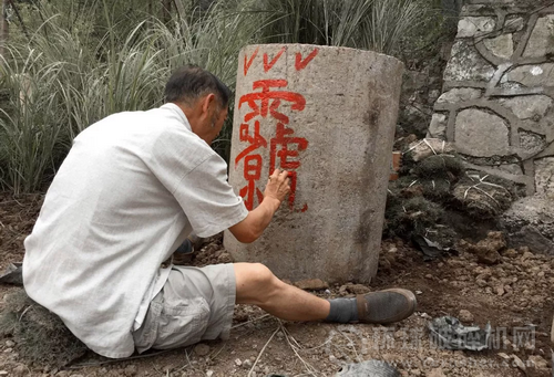 ▼ 老支書是村里的文化人,他坐在地上一個多小時,在水泥管上畫神符。他認真的神態(tài),讓我們愿意相信這古老的信仰會有神奇的力量。(共兩個,分別寓意安神和保平安)