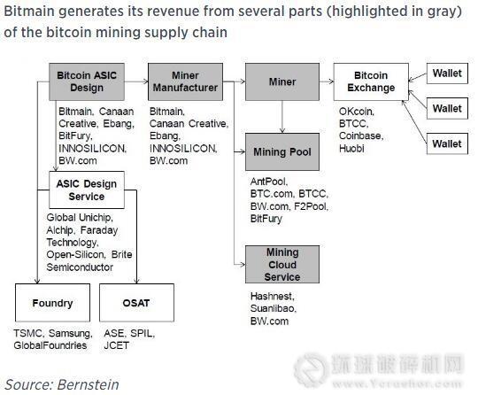 比特大陸瞄準了比特幣礦機銷售,每臺螞蟻礦機(Antminer)可以買到幾百美元到幾千美元,并且即將推出針對以太幣挖礦機型F3。該公司還運營專門的“采礦池”,讓參與者就比特幣采礦進行合作,以降低成本。伯恩斯坦稱,Bitmain在比特幣礦工和Asics公司擁有70-80%的市場份額。