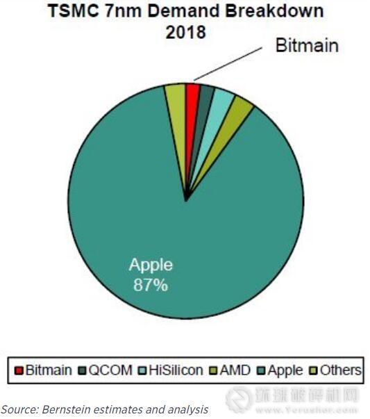 伯恩斯坦分析師還考察了Bitmain從臺積電購買的產品,并估計該創業公司去年貢獻了芯片制造商總收入的2%至3%。