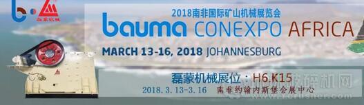 2018年南非國(guó)際建筑機(jī)械、建材機(jī)械、礦山機(jī)械及工程車輛展將于2018年3月13日-16日在南非最大的經(jīng)濟(jì)中心城市約翰內(nèi)斯堡舉行,磊蒙機(jī)械即將在展會(huì)上與大家見(jiàn)面,向國(guó)外客戶展示磊蒙機(jī)械在礦山破碎篩分領(lǐng)域的最新產(chǎn)品與最新技術(shù)。展位號(hào)H6.K15,歡迎大家蒞臨參觀洽談!