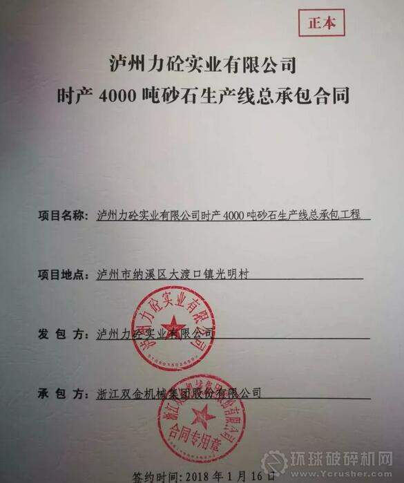 2018年1月16日,瀘州力砼實業(yè)有限公司時產(chǎn)4000噸砂石生產(chǎn)線項目總承包工程正式簽約。