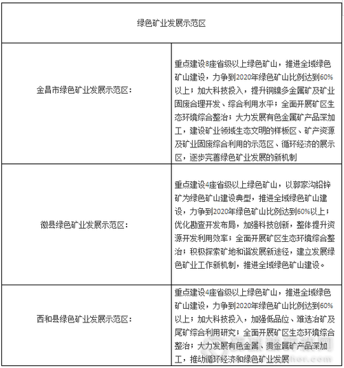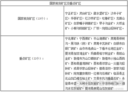 加強(qiáng)甘肅省13個(gè)國家規(guī)劃礦區(qū)、22個(gè)重點(diǎn)礦區(qū)的開發(fā)保護(hù)和監(jiān)管。區(qū)內(nèi)其他礦種礦業(yè)權(quán)設(shè)置不得影響主要礦種的勘查開采。按照規(guī)模開發(fā)、集約利用、工藝先進(jìn)、綠色環(huán)保的原則,引導(dǎo)和支持各類生產(chǎn)要素集聚,從資源配置、采礦用地、財(cái)稅政策等方面加大支持力度,促進(jìn)規(guī)模開采和集約利用,推動大中型現(xiàn)代化礦山基地建設(shè)。