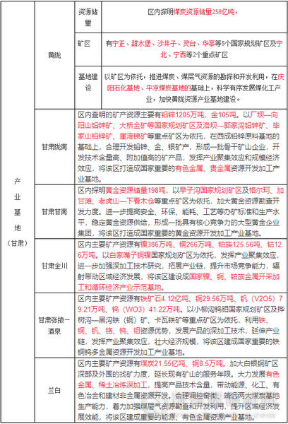 此外,金、釕、碲、鉻、鋅、鎢、稀土等金屬礦產(chǎn)及普通螢石、鉀鹽等非金屬礦產(chǎn)查明資源儲量位居全國前五位。資源儲量分布高度集中,石油89%集中于長慶油田,煤83%集中于隴東地區(qū),鐵礦石90%集中于張掖、酒泉、甘南3個(gè)市州,鎳、鉑族99%和銅74%、鈷92%集中在金昌市,鉛鋅91%、銻91%集中在隴南市,鎢99%集中在張掖、酒泉2個(gè)市,金在隴南、甘南2個(gè)市州的資源儲量占甘肅省總儲量的72%。