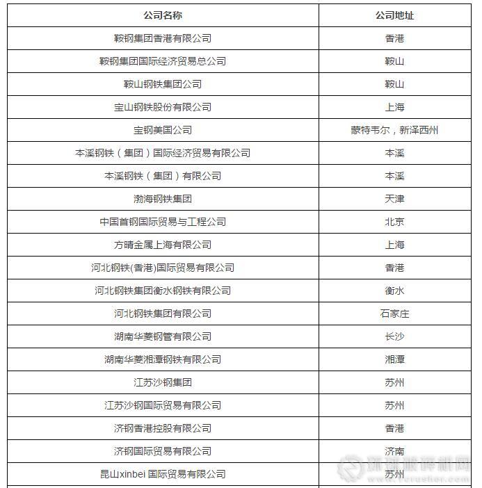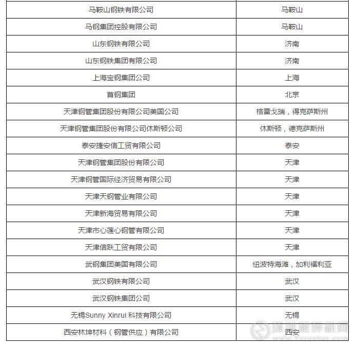 涉及美國(guó)337調(diào)查的40家中國(guó)鋼鐵企業(yè)具體名單(兩年時(shí)間已經(jīng)有不少公司合并或解體)