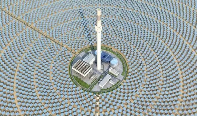 在沙漠中安裝上萬(wàn)面定日鏡,環(huán)繞著260米的集熱裝置,隨著太陽(yáng)的移位,保持最佳反射角度,聚光、吸熱、儲(chǔ)熱、換熱……聚集的陽(yáng)光可以形成超過(guò)1000℃高溫,集熱器將熱量傳遞到塔下的熔鹽中,用水冷卻熔鹽的過(guò)程中產(chǎn)生大量蒸汽,推動(dòng)汽輪機(jī)產(chǎn)生電力。