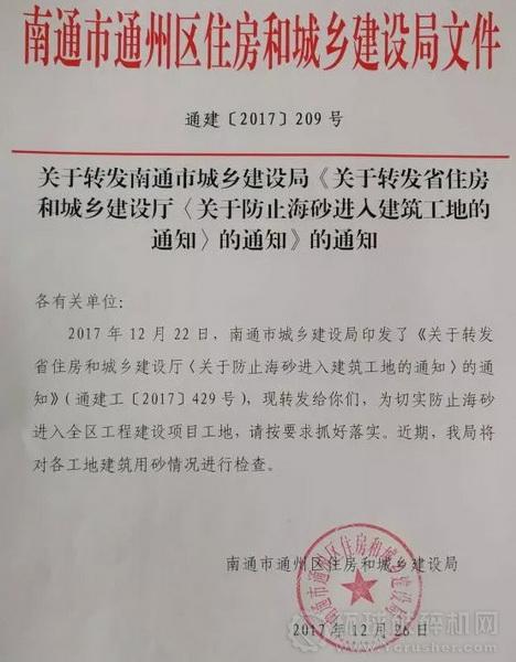 日前,江蘇省住房和城鄉(xiāng)建設廳印發(fā)了《關于防止海砂進入建筑工地的通知》,通知主要要求如下:
