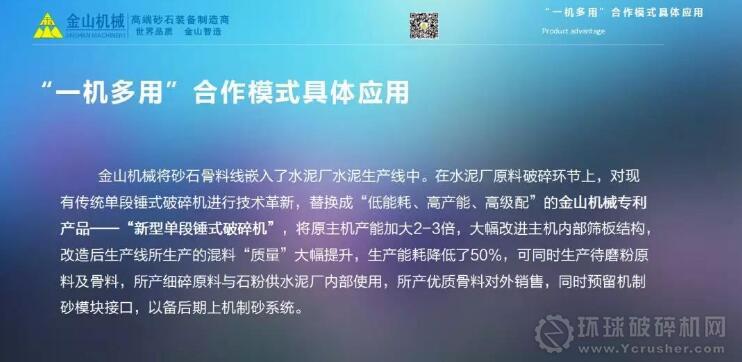 鑫金山智能機(jī)械首倡水泥行業(yè)“一機(jī)多用”提高水泥線破碎機(jī)產(chǎn)量,降低電耗,破碎出骨料和水泥線磨機(jī)專用料。