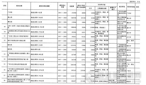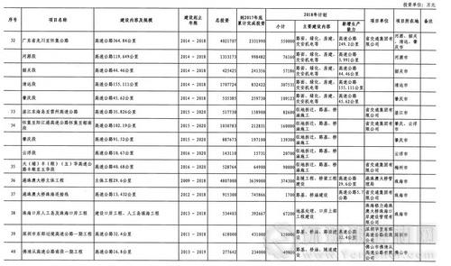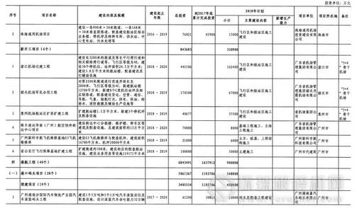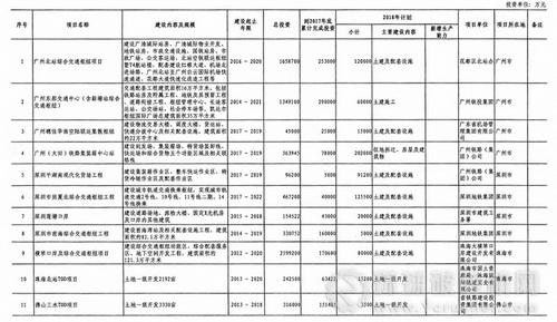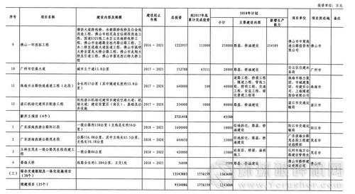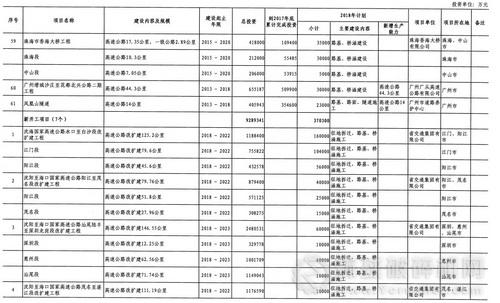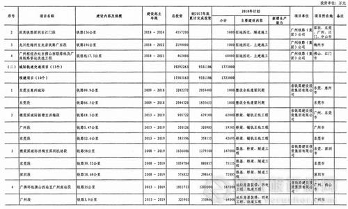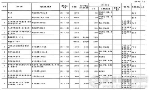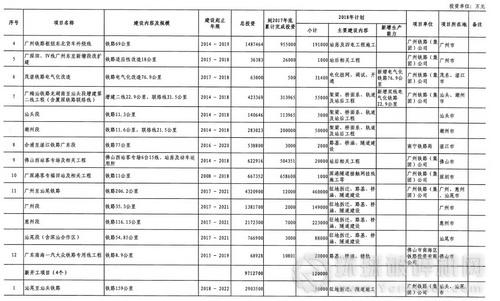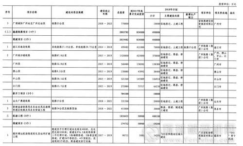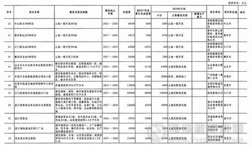 廣東省2018年重點建設(shè)項目計劃(部分表)
