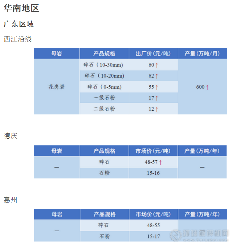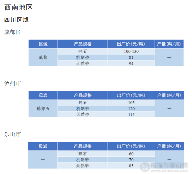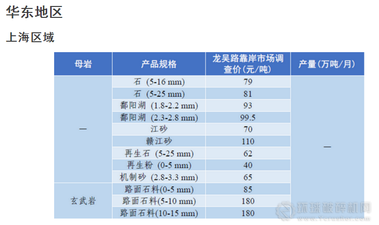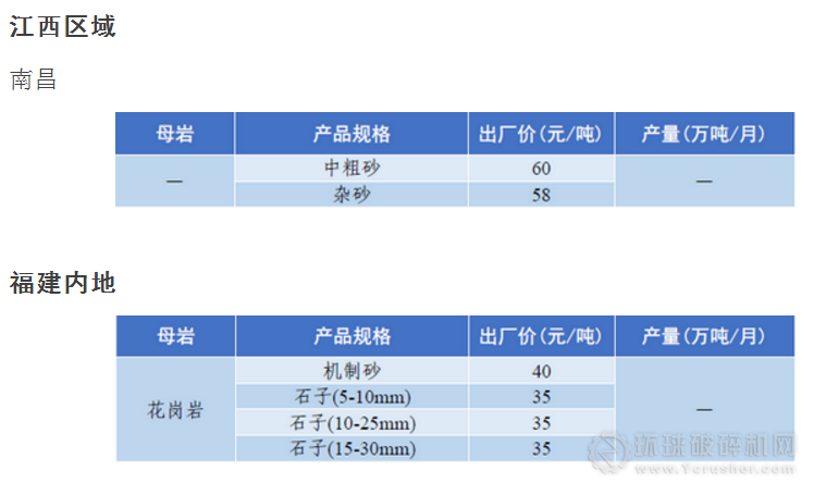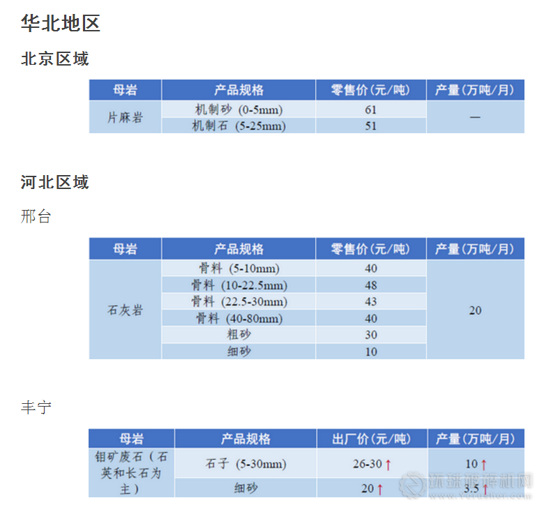 2018年3月全國(guó)砂石骨料價(jià)格和產(chǎn)量