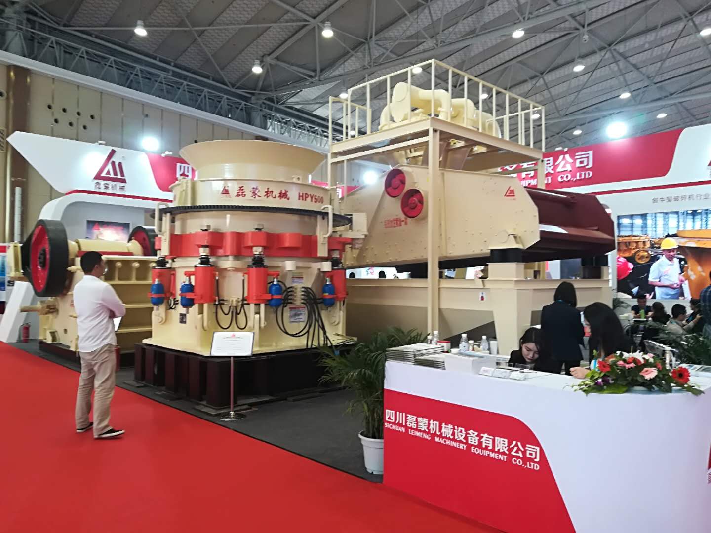 四川磊蒙機(jī)械設(shè)備有限公司水泥展亮相的液壓圓錐破、鄂式破碎機(jī)、高頻振動(dòng)篩設(shè)備