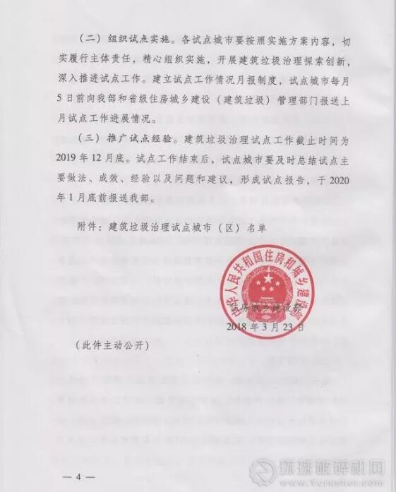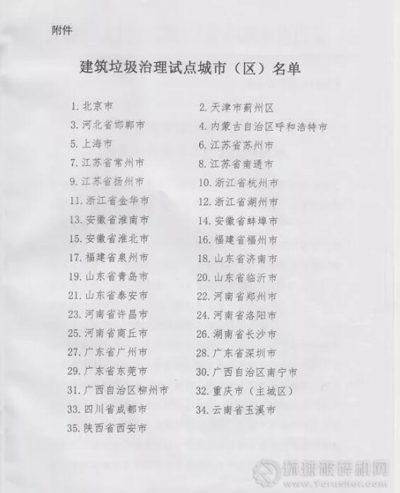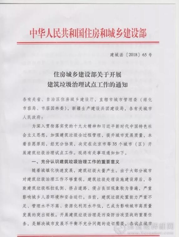 近日,住房和城鄉(xiāng)建設(shè)部印發(fā)《關(guān)于開展建筑垃圾治理試點工作的通知》(建城函〔2018〕65號),決定在北京市等35個城市(區(qū))開展建筑垃圾治理試點工作。
