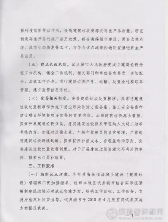 《通知》要求,要合理布局消納處置、資源化利用設(shè)施,加快設(shè)施建設(shè),推動資源化利用,提高建筑垃圾再生產(chǎn)品質(zhì)量,研究制定再生產(chǎn)品的推廣應(yīng)用政策,要求試點地區(qū)在2018年4月前制定試點實施方案。