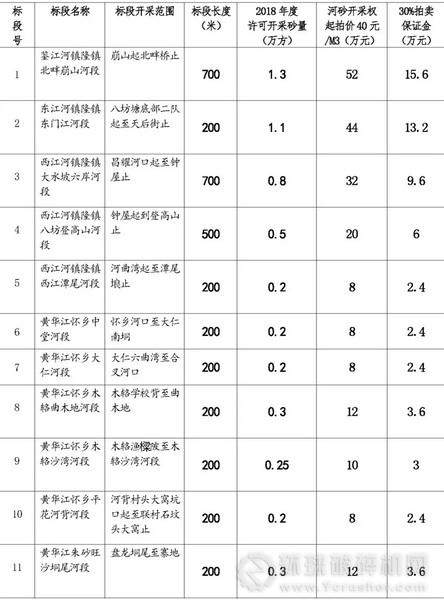 信宜市2018年度河砂開采權(quán)拍賣標(biāo)段情況一覽表
