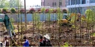 四月的公安港區春意盎然,在港區復綠現場,只見現場機械設備正在清理場地,工人們對復綠樹種進行修剪。