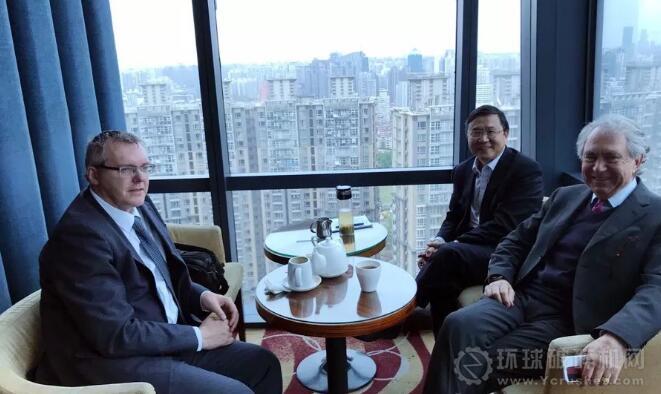 山美股份董事長(zhǎng)楊安民、德國(guó)SK集團(tuán)董事長(zhǎng)格林茨博士和德方監(jiān)事托馬斯先生董事會(huì)后繼續(xù)深入討論工作