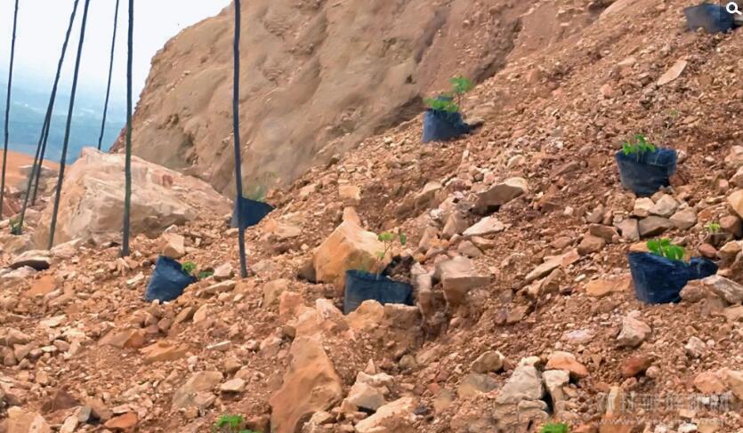 4月22日,湖南省湘鄉市山棗鎮窯沖村,一排排長勢良好的“盆景”被放置在挖得千瘡百孔的山體上。當地人說,這些“盆景”是之前為了迎接檢查而擺設好的。按照衛星地圖投影面積的測量,山林被挖掘的地方在300畝以上。據記者了解,這家采石場已開采七、八年,連綿起伏的山脈早就挖成一個巨大的豁口。經常性放炮開山,炸出來的飛石、滾石等擊壞了周邊居民的房屋。