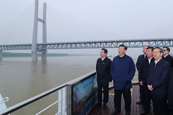 4月25日,習(xí)近平總書記赴荊江、岳陽察看長江沿岸生態(tài)環(huán)境和發(fā)展建設(shè)情況,調(diào)查研究長江經(jīng)濟(jì)帶“共抓大保護(hù)、不搞大開發(fā)”的落實情況,聽取長江非法碼頭整治等情況匯報,強(qiáng)調(diào)長江大保護(hù)。