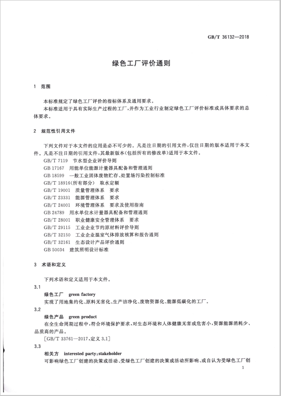 近日,為加快推進制造強國建設,實施綠色制造工程,積極構建綠色制造體系,由工業和信息化部節能與綜合利用司提出,中國電子技術標準化研究院聯合鋼鐵、石化、建材、機械、汽車等重點行業協會、研究機構和重點企業等共同編制了GBT36132-2018綠色工廠評價通則國家標準正式發布。這是我國首次制定發布綠色工廠相關標準。