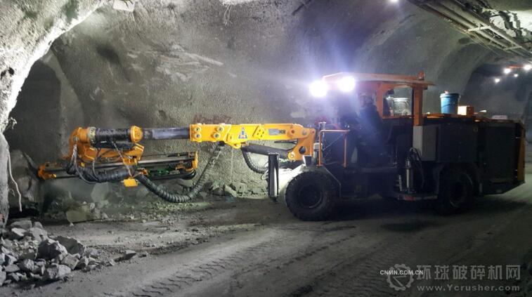 在初始階段的大塊處理中,項目部采取了手抱鉆人工鉆孔、281臺車打孔,然后進行引爆破碎等方法。每打一個出礦口的大塊,都要進行連接和移動通風管、水管、電纜等工作。而各作業面點多線長,各種管道電纜挪來拉去,花費時間多、勞動強度大,效率很低,這種原始的處理方法與普朗大規模出礦生產很不匹配。項目部的另一個方法是利用移動式破碎臺車進行沖擊破碎。雖然也能解決一定的問題,但是由于大塊太多,尤其遇到超大塊時,破碎時間也很長,同樣不能滿足高效率生產的要求。