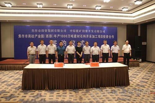 5月17日上午,焦作市舉行商砼產業園(西部)年產1000萬噸建材石料開采加工項目投資簽約儀式。該項目位于焦作市中站區河口村西北,開采范圍約6000畝,礦產儲量約1.5億噸,包括年產1000萬噸建材石料開采加工項目、礦山開采區后期綜合生態環境的恢復和治理等。