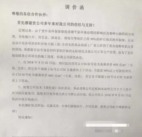 受中央環保督察組澇渭平原環境治理和秦嶺山脈綜合整治的影響,銅川市、周至縣、洛南縣、渭南市等地區已將90%的砂石場關閉并取締,造成市場各項原材料價格大幅上漲,全西安的混凝土廠家已經到了現金搶購有款無貨的困境,甚至有的企業不顧高昂運費,從位于大巴山區域的四川達州市購買石子。