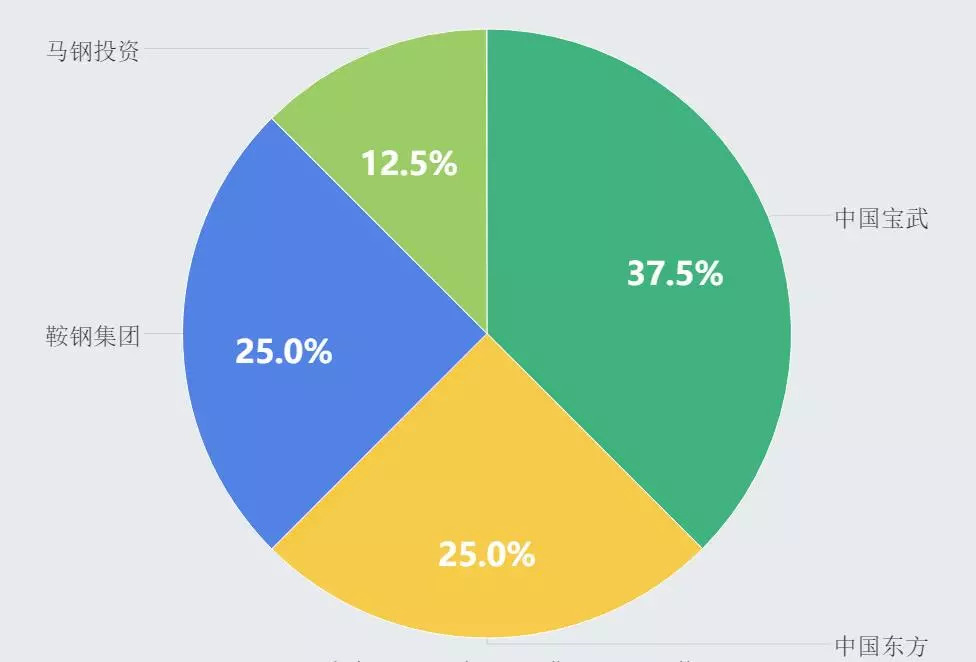 華寶冶金資產管理有限公司的股東聚合了兩大鋼鐵央企中國寶武、鞍鋼集團和優秀地方國企馬鋼投資,并成功引入四大國有金融資產管理公司之一的中國東方。四家股東共出資20億元人民幣,其中中國寶武持股比例為37.5%,中國東方和鞍鋼集團各持股25%,馬鋼集團旗下馬鋼投資持股比例為12.5%。