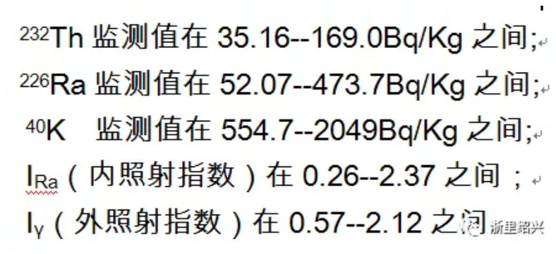 根據《建筑材料放射性核素限量》(GB6566-2010),江西省核工業地質局測試研究中心對義峰山石料礦18個點位巖石采樣進行了放射性核素監測,監測結果如下: