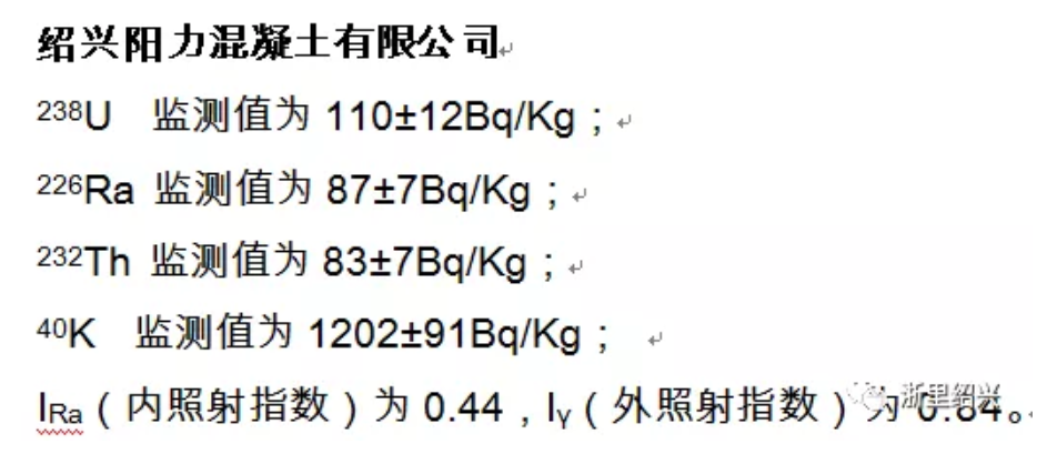 二、涉事混凝土企業混凝土試塊樣品放射性核素監測結果