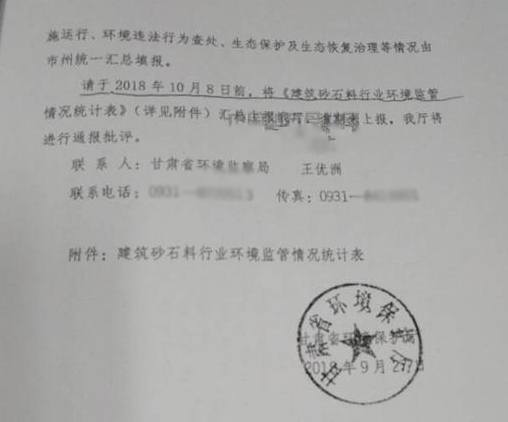 9月27日,甘肅省環(huán)境保護(hù)廳下發(fā)緊急通知,要求調(diào)度全省建筑砂石料企業(yè)環(huán)保監(jiān)管情況。