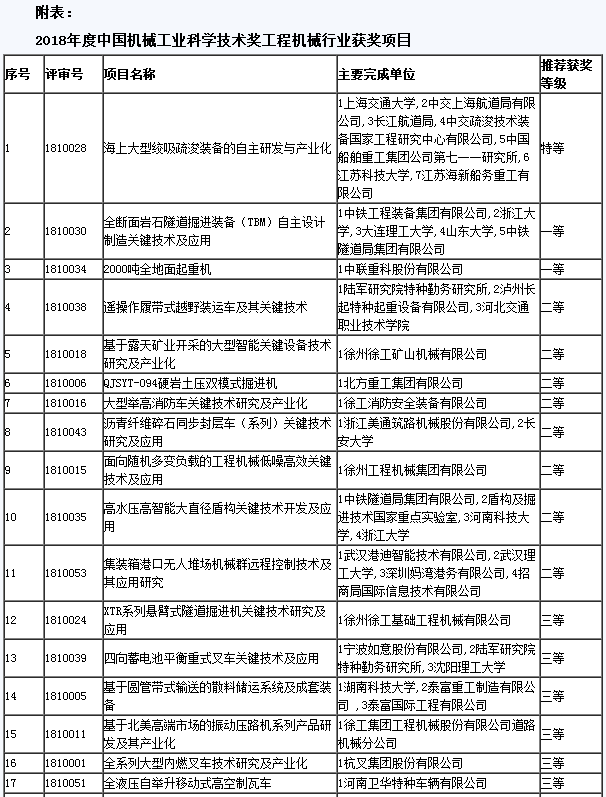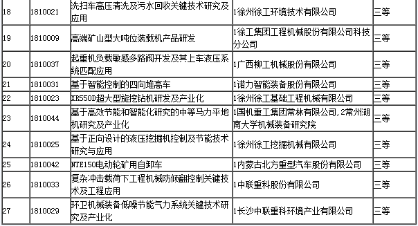 2018年度工程機械行業科技獎獲獎項目揭曉