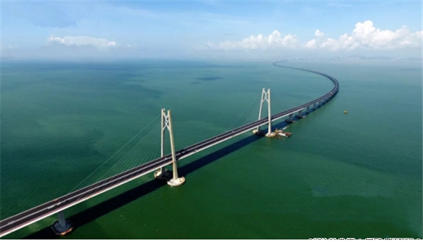 港珠澳大橋跨越伶仃洋,是目前世界最長的跨海大橋,從設計到建筑歷時14年。其總長約55公里,東接香港,西接廣東珠海和澳門,是粵港澳三地首次合作共建的超大型跨海交通工程。2015年英國《衛報》評選的“世界七大奇跡”工程將港珠澳大橋工程列在了第三位。