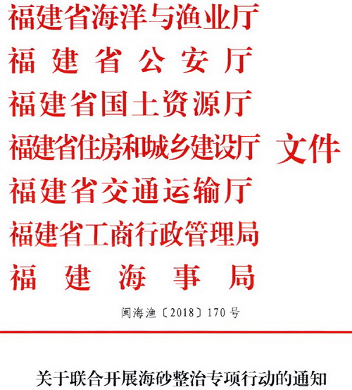 福建省緊鄰的臺灣海峽是“海峽砂”開采的源地,近日,福建省海洋與漁業廳等七部門聯合開展海砂整治專項行動,從源頭打擊海砂開采。
