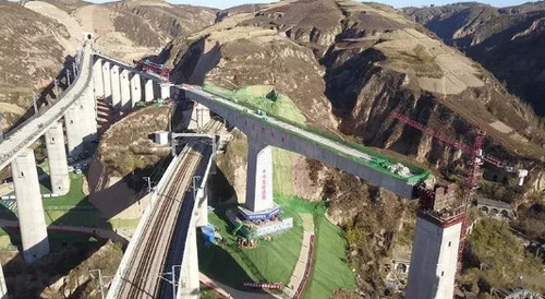 近日,中交一公局集團承建的山西豫能興鶴鐵路專用線曹家坡特大橋轉體橋成功轉體。該轉體橋是目前國內最重的鐵路單墩轉體橋。