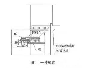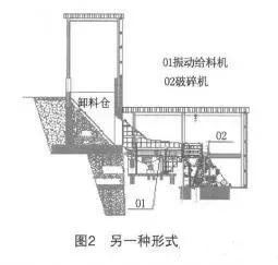 圖2:振動給料機布置在卸料倉底部外側:它的優點是倉內物料不直接壓在設備上,對設備的要求較低,設備的制造成本相應較小;缺點是物料中含土較多或者流動性較差時容易堵料或者卸料不通暢。