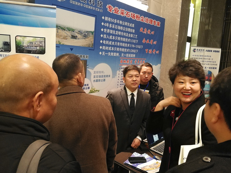 安順承誠科技有限公司董事長陳承作題為《綠色礦山建設之痛點——全新粉塵治理技術》的主題報告。陳董事長指出,采石場粉塵的有效治理一直是一個全國性的技術難題,導致許多企業作了大量投入卻沒有真正到達根本治理的效果。因采石場產塵點多,產塵速度快等特點,現有簡單灑水、噴霧、霧泡、布袋除塵、泡沫除塵、廠房密閉、水洗砂等治理技術不能達到真正治理效果或投入運行成本太高。陳董事長介紹了其公司全新的治理技術:一次性投入解決治理難題,投入成本只有傳統技術1/3以下、電耗成本只有傳統技術1/10-1/5以下、耗材成本只有傳統技術1/20以下。